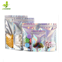 Jiacheng กระเป๋าซิปล็อคแบบตั้งบรรจุภัณฑ์เครื่องสำอางโฮโลแกรม Mylar พิมพ์ลายแบบกำหนดเอง