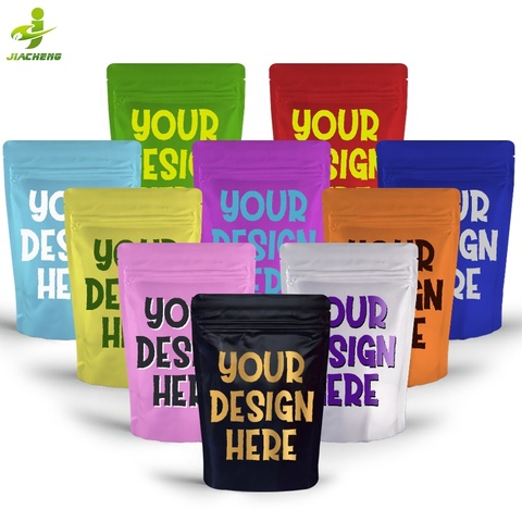JIACHENG özelleştirilebilir 1g 1/8oz 3.5 gram 4x6 1/4 oz 7 gram 1 oz 28 gram mat koku geçirmez zip kilit özel mylar çantalar şeker